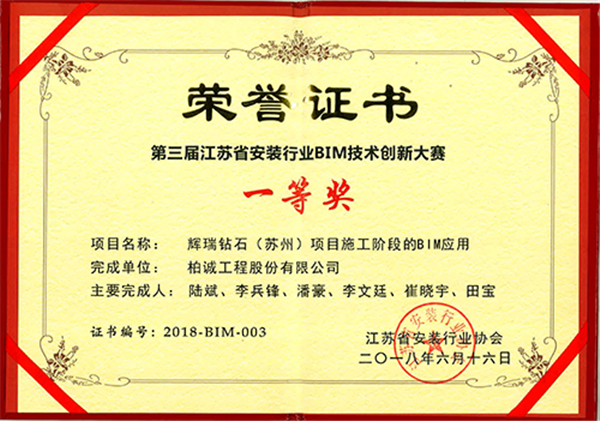 近期,在江蘇省安裝協(xié)會主辦的2018第三屆江蘇省安裝行業(yè)BIM技術(shù)創(chuàng)新大賽中,公司參賽項(xiàng)目“輝瑞鉆石(蘇州)項(xiàng)目施工階段的BIM應(yīng)用”喜獲一等獎(jiǎng),特此通報(bào)。