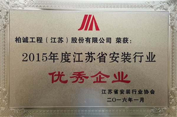 近日,公司榮獲江蘇省安裝行業(yè)協(xié)會(huì)頒發(fā)2015年度“江蘇省安裝行業(yè)優(yōu)秀企業(yè)”獎(jiǎng)。