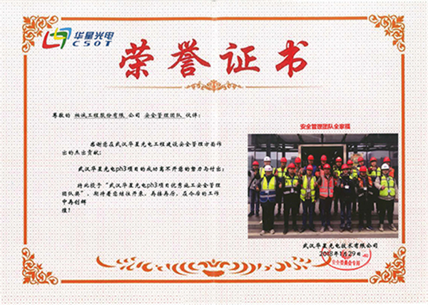 2018年1月,我公司在武漢華星光電ph3項目中喜獲“優(yōu)秀施工安全管理團(tuán)隊獎”。